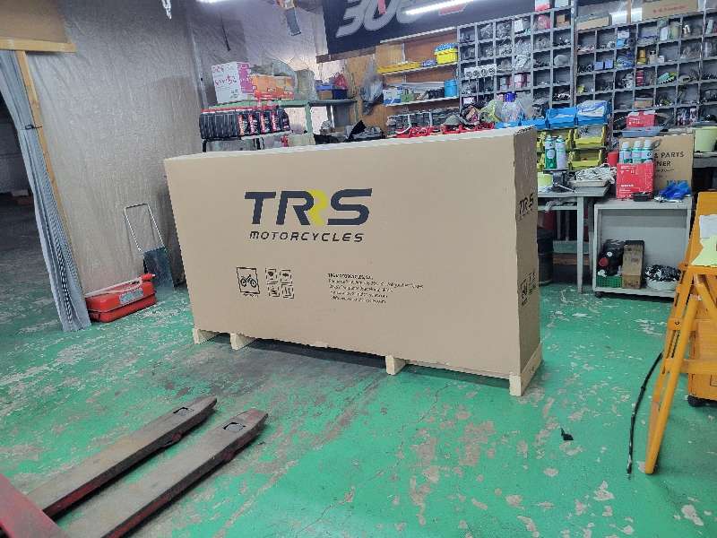 この状態で船便で来るそうです 重量は バイク 本体で 70kg ぐらいなので 昨日 枠組みを入れても100kg 未満でしょう
