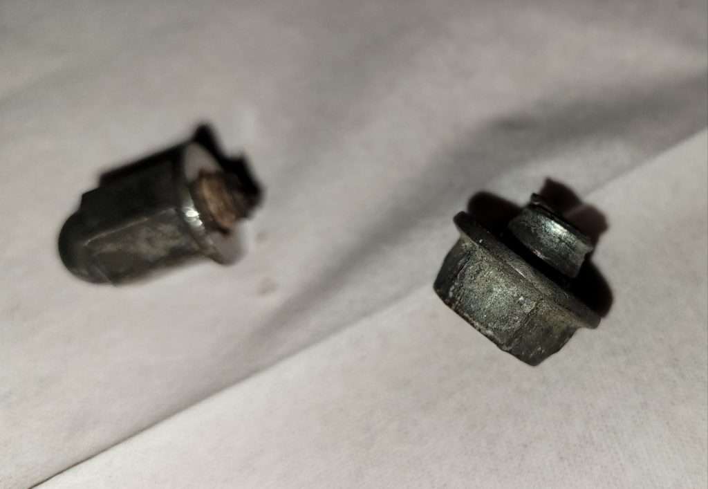 お客様の名誉のために車体の画像は伏せておきます 無残に折れたボルトやねじれたナット