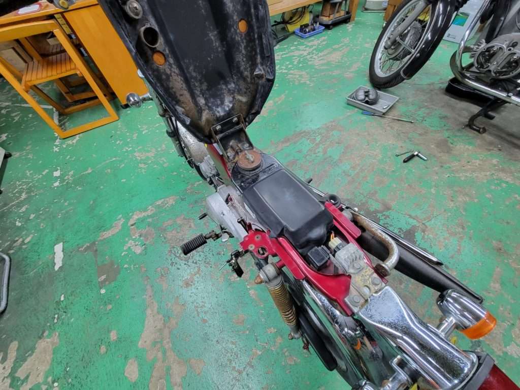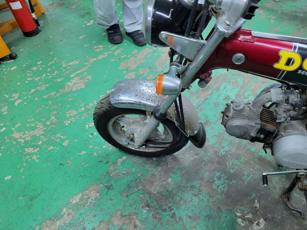 何年も置きっぱなしだったため メッキのフェンダーや マフラーなどサビサビです